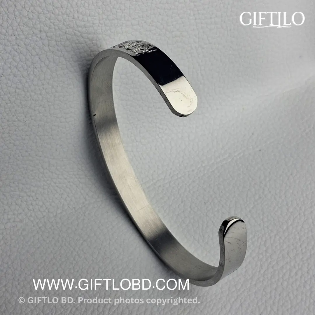 প্রিমিয়াম Stainless Steel দিয়ে তৈরি এই এলিগেন্ট সিলভার ব্রেসলেটে খোদাই করা আছে পবিত্র Ayat Al-Kursi (The Throne Verse), যা আপনাকে দেবে আধ্যাত্মিক প্রশান্তি ও একটি পরিশীলিত ইসলামিক লুক।