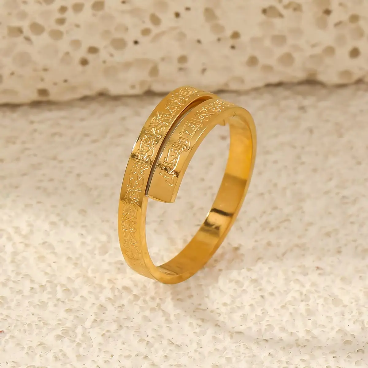 প্রিমিয়াম Stainless Steel দিয়ে তৈরি এই Gold এডিশন রিং–এ খোদাই করা আছে পবিত্র Ayat Al-Kursi (The Throne Verse), যা আপনাকে দেবে আধ্যাত্মিক প্রশান্তি ও একটি শক্তিশালী ইসলামিক লুক।