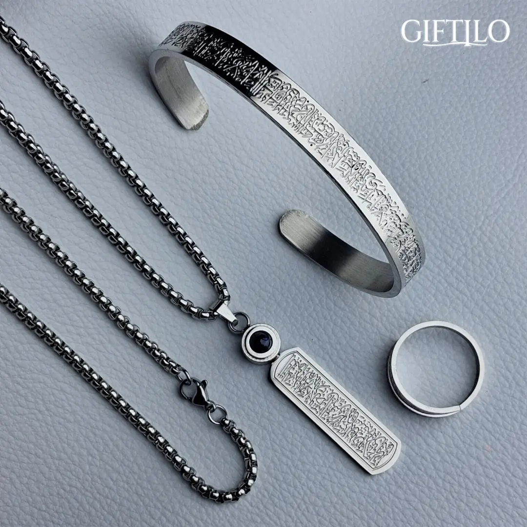 Ayat Al-Kursi Calligraphy 3-in-1 Combo (Silver Colour)