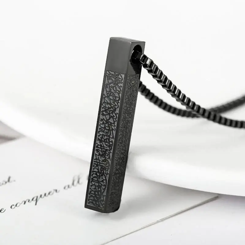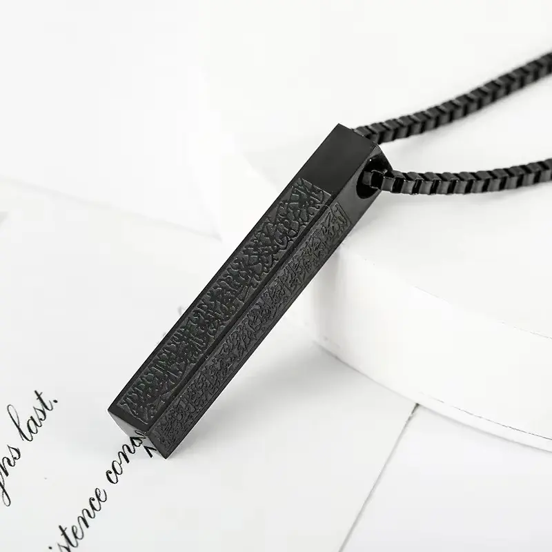 প্রিমিয়াম Stainless Steel দিয়ে তৈরি এই ব্ল্যাক লকেটে খোদাই করা আছে পবিত্র Ayat Al-Kursi (The Throne Verse), যা দৈনন্দিন ব্যবহার ও নামাজে আধ্যাত্মিক প্রশান্তি দেবে।