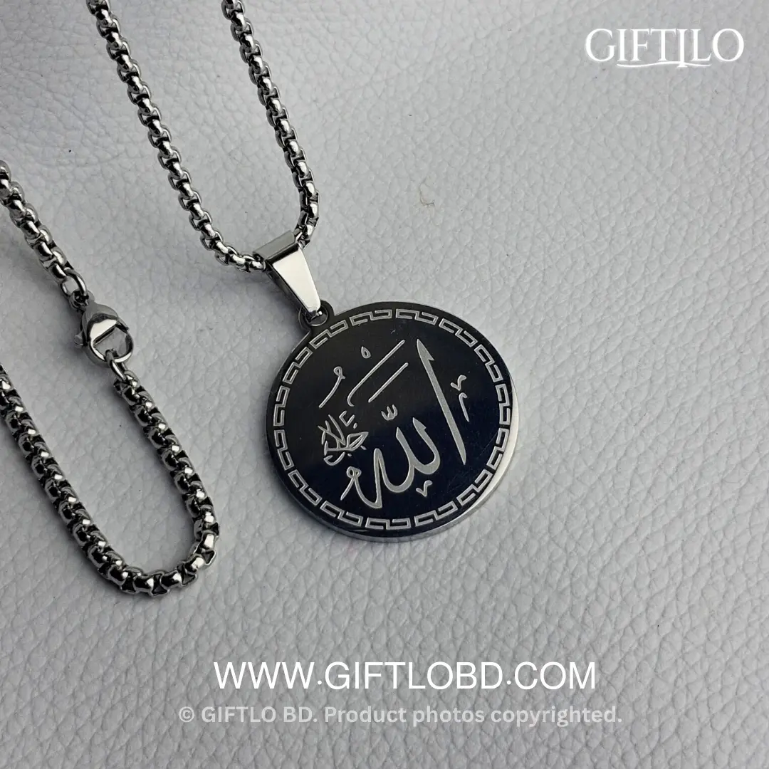 ◾ প্রিমিয়াম Stainless Steel দিয়ে তৈরি এই Silver লকেটের উপর অংশে খোদাই করা আছে “Allahu ” এবং পরের অংশে খোদাই করা আছে পবিত্র Ayat Al-Kursi, যা দৈনন্দিন ব্যবহার ও নামাজে আধ্যাত্মিক প্রশান্তি দেবে। Waterproof, Dust ও Rust Proof—দৈনন্দিন ব্যবহারের জন্য পারফেক্ট।
